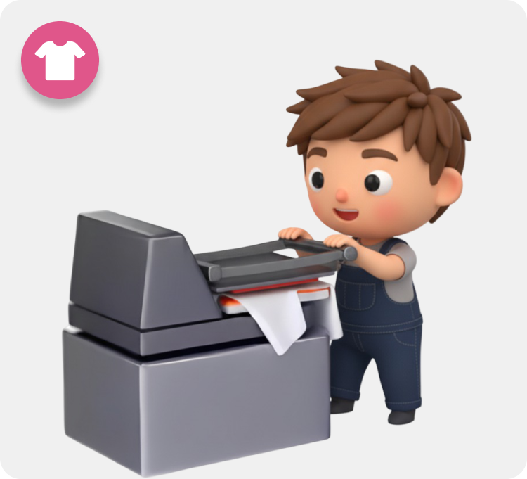 Your order goes straight into our full production setup. We use our own DTF printers, curing systems and professional heat presses to guarantee sharp colors, clean lines and consistent quality every single time. No outside vendors, no guesswork.